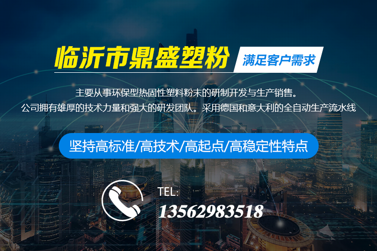 臨沂市鼎盛塑粉有限公司源于2015年3月,公司坐落于臨沂市河東區(qū)后翟店工業(yè)園區(qū)內(nèi)。主要從事環(huán)保型熱固性塑料粉末的研制開發(fā)與生產(chǎn)銷售。公司擁有雄厚的技術(shù)力量和強大的研發(fā)團隊。采用德國和意大利的全自動生產(chǎn)流水線,年生產(chǎn)各類高端環(huán)保塑料粉末5000余噸,其中出口2000多噸。